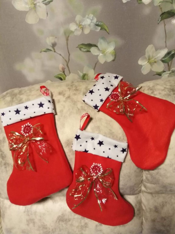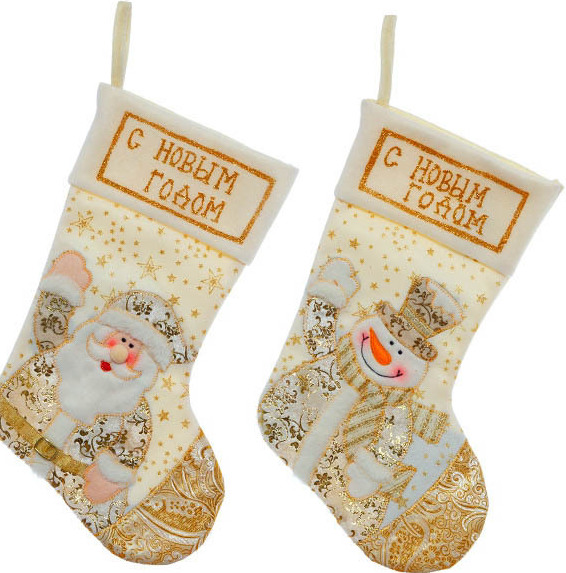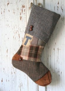 The easiest way to make a festive sock is from textiles. And being able to sew perfectly is completely optional, as the patterns are very simple, you can even draw the shape of the product you like on your own. And the halves of the sock can be fastened with a decorative stitch or simply glued together with special glue - they will hold tight.