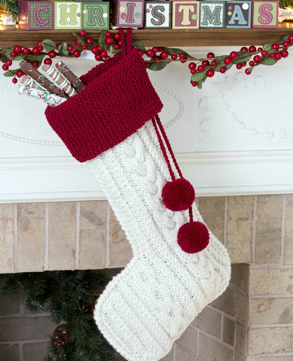 Classic Christmas socks for gifts can be knit without heels, the main thing is to keep the shape of the sock.The traditional “spit” technique that we used to see on warm winter sweaters will look very nice on knitted socks. You can decorate socks with pompoms on a string of yarn or with a ribbon you like.