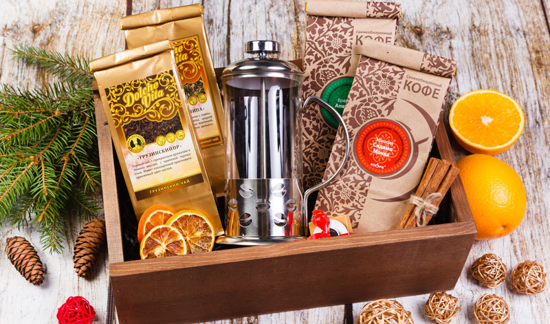 Choose a VIP gift set with your favorite expensive drink in a box of precious woods, inside of which are exclusive sorts of coffee or tea.