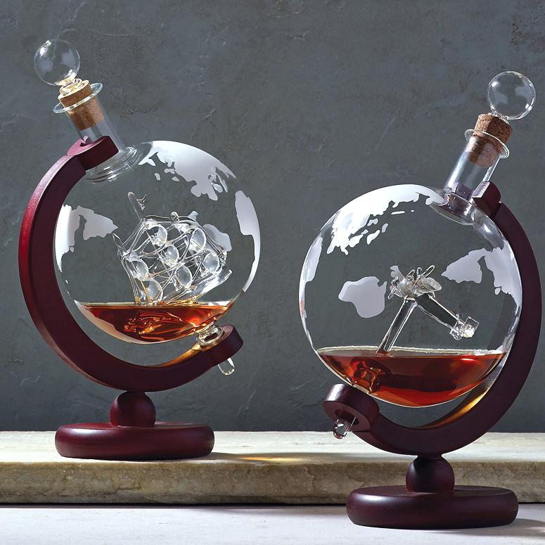 - Expensive alcoholic beverage in a bottle in the shape of a globe will suit the experienced traveler. On long winter evenings, he will be immersed in memories of the events of bygone days.