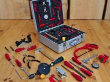 - Present to him a set of tools for children, which will be a grinding machine, a drill and a hammer.