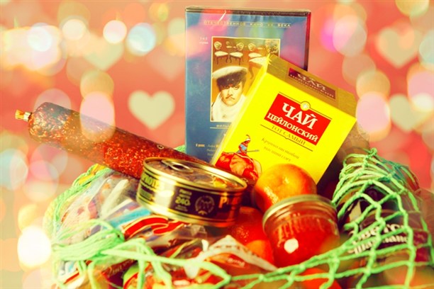 - A set of products from the time of the Soviet Union will be an unforgettable gift for relatives of the older generation. It can include a can of condensed milk, a bottle of Soviet champagne, Indian tea with an image of an elephant on a wrapper, a can of sprat and green peas and a stick of smoked sausage on a can.