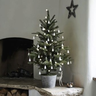 Living tree in a pot with a set of small toys will serve as a nice present for the holidays. Such a gift will be a unique and unusual Christmas decoration in eco style.