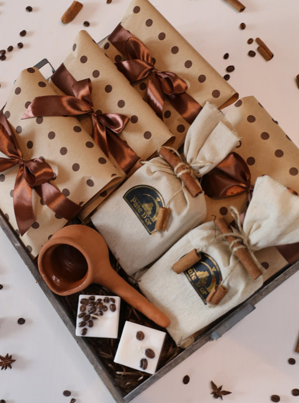 And the final touch is gift paper wrapping. Dense color wrap will hide all traces of scotch and make the aromatic composition bright and beautiful.