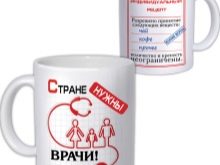 - Cup. You may think that this is a banal gift, but if you order such a mug with a pattern that appears when pouring hot water or drinks, this gift will be unusual. Moreover, to order you can choose pictures, labels or photos for every taste. You can insert a photo of the doctor, his favorite phrase or describe his merits.