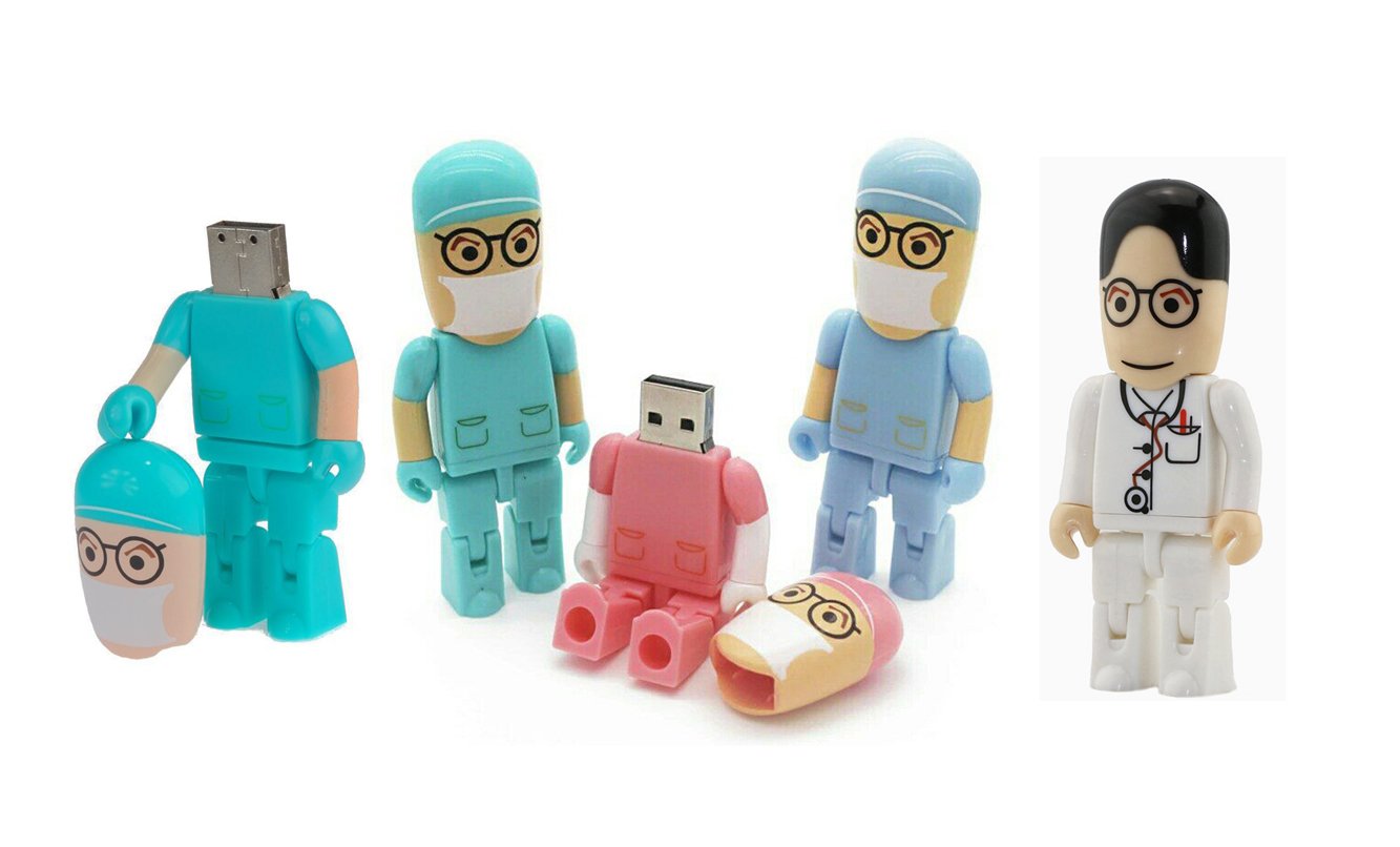 - Flash drive. This gift is necessary for all. You can find a flash drive for a large amount of memory. You can also buy a USB flash drive in a classic style or in the form of a fancy figure. For example, give a pediatrician a flash drive in the form of a cartoon character. There are very original copies, including New Year.