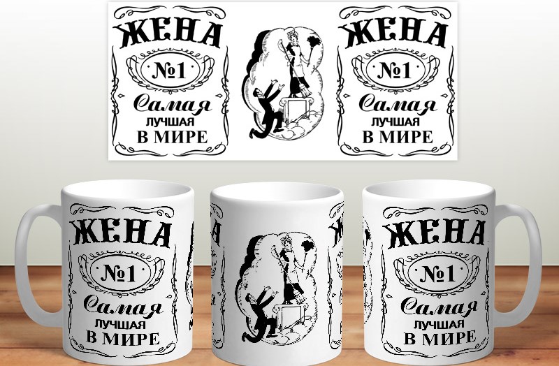 - Cup with an unusual or thematic print It can also be a great gift if your spouse cannot do without a portion of morning coffee or evening tea. A thematic object, object, favorite character or your photo can be captured on the circle.