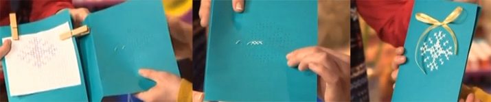 We fold the cardboard in half. Embroidery on a card includes several steps.