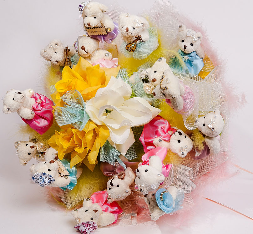 - Addition to the decorative vase - hand-made flowers, the petals of which may be photos of graduates; bouquets of small soft toys sewn with their own hands.