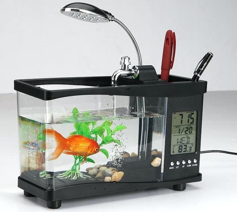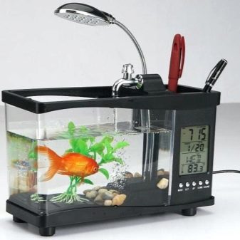 USB-powered small goldfish aquarium - in addition to contemplating the soothing movements of a graceful goldfish, the director will be able to take advantage of other features of such a presentation - it has a clock, a stand for stationery;