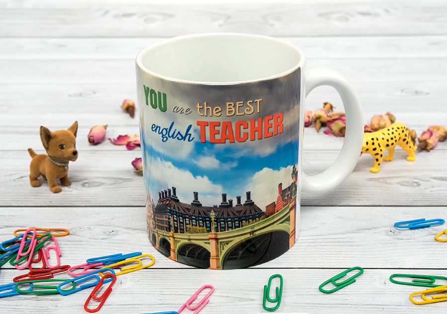 - Tableware - A tea or coffee mug will always have to be a teacher by the way, and if it is personalized, it will be doubly pleasant. On the cup or glass, you can order a lettering with a request by name, a photo of the entire class, as well as any other designs.