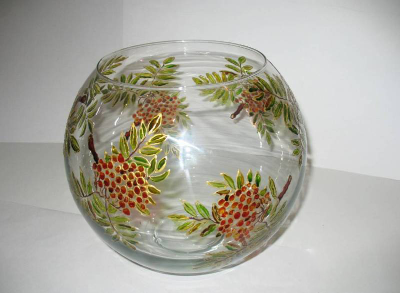 - glass vase, decorated with the hands of students in the technique of stained glass;