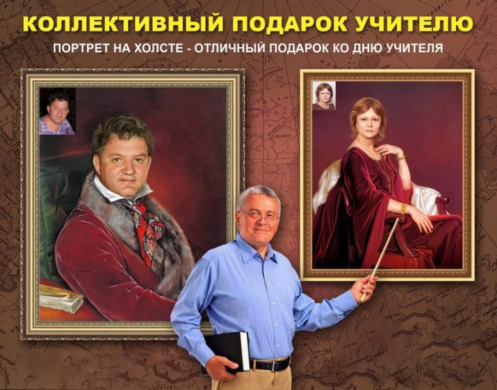 Portrait of a teacher by his photos. Such a gift will be a true recognition, a sign of respect and appreciation. Allowable portraits in any technique - graphics, watercolor, painting. Today such a service as the transformation of a person in a portrait depending on his profile of activity is in great demand. For example, you can order a portrait in which the class teacher teaching history will appear as the Roman commander or queen of Egypt, and the class teacher teaching literature in the image of the poet of the Middle Ages. You can simply make a king, princess, fairy or wizard out of a class teacher. The possibilities are endless.