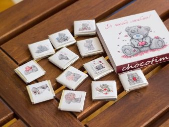 - 12 chocolates. For the gift you will need 12 chocolate bars with different tastes. After buying sweets, you must purchase wrapping paper and wrap each tile in a separate package. On each of them you need to write a certain month, in the end you get 12 "chocolate" months. All chocolates can be folded in a box or a handy bag, and then presented to the girl: the meaning of the gift is that at the beginning of each month she can reveal sweetness and remember who gave her such an unusual gift.