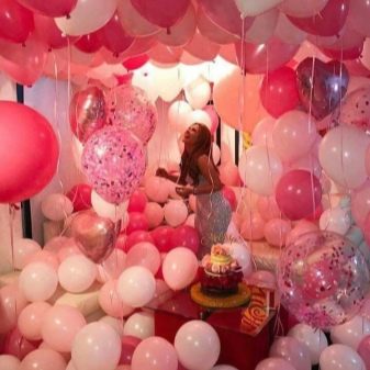 - Surprise in the form of balloons. You can make an impression with the help of balls, which you will need to buy a lot. Next you need to place the inflated balls in the room, where then bring the birthday girl. Fun emotions are provided!