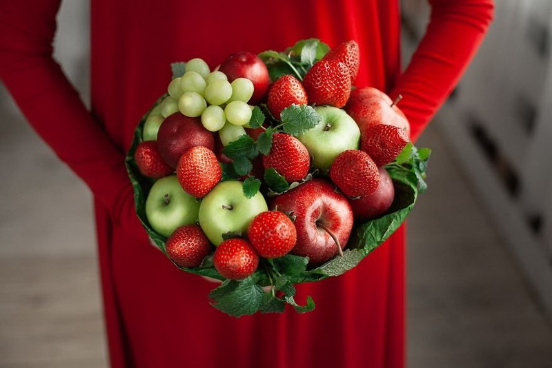 Women of any age love to receive luxury bouquets for the holiday. As a pleasant surprise, you can present an unusual bouquet to your friend. What does she like the most - chocolates, fruits, soft toys? Then give her a bouquet of her favorite candies, or hand a real fruit and berry bouquet.