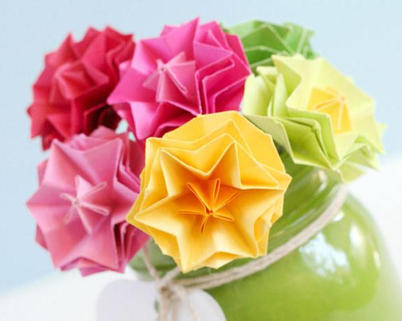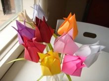 Crafts are different in complexity. One of the difficult options is a surprise from origami. This is the Japanese art of paper folding various animal, bird and even flower figurines. With the help of this technique, you can fold the whole bouquet as a gift to mom for birthday.