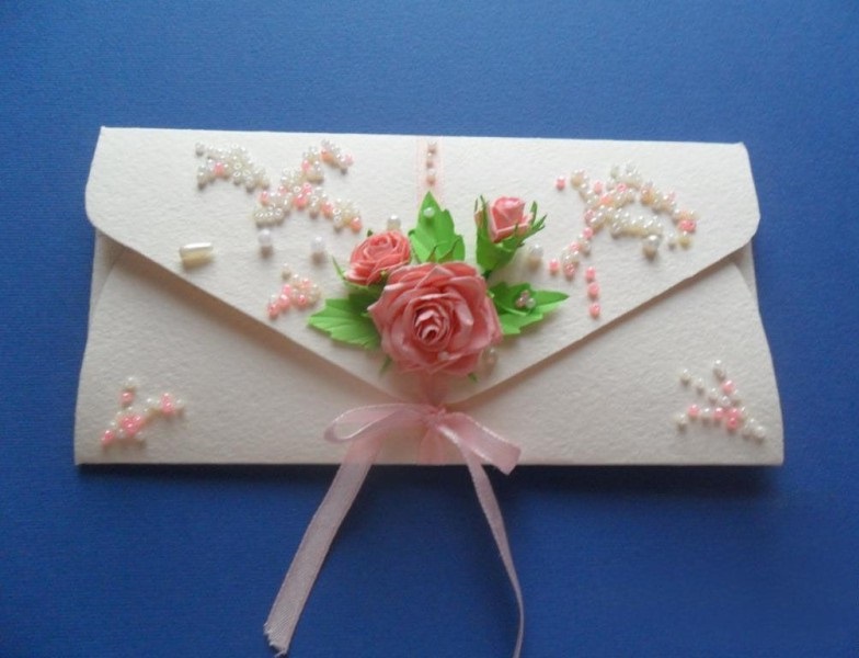 - An envelope. Fold the envelope is simple: look carefully at how a regular mail copy is made and repeat in practice. Make it out of colored paper and cardboard, and top it with appliques, stickers and glitter.