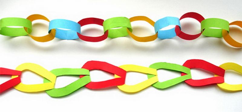 - Paper ring chain. Cut the small strips of paper and glue it first into the ring. Pass the other strip through the first one and lock it into the ring. Gradually, you will have a long chain, the links of which you can make all the colors of the rainbow.