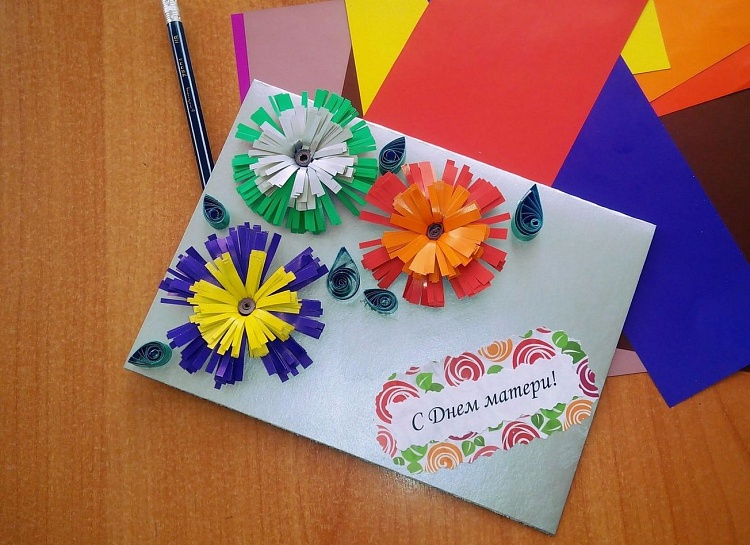 The postcard is a compact and pleasant surprise. Mom will be able to put it on your desktop or chest of drawers and periodically remember you, looking at this picture. In this craft you can put all the love and tenderness, as well as express them in words of congratulations. The postcard does not take up much space and can be stored for many years. Instructions for its creation includes several steps.