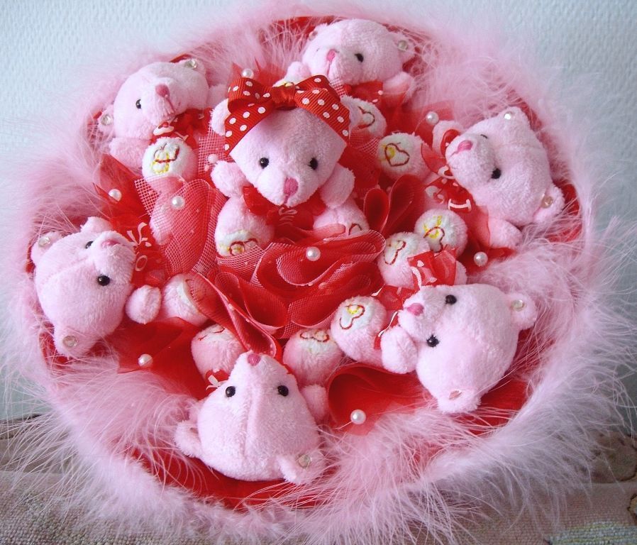 - Soft toy. A small teddy bear or puppy will melt the heart of any woman. Purchase a compact version so that it is convenient to store and hold in your hands during a meeting.