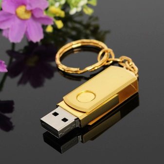 Flash card. Modern business life is hard to imagine without a computer. A young woman boss can appreciate a flash drive with an original design.
