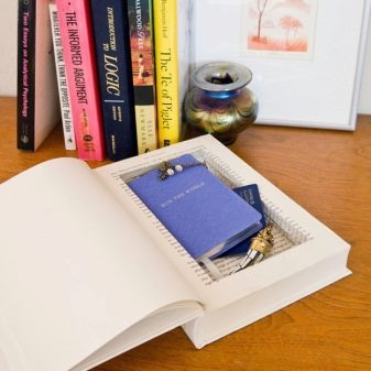 - Book safe. You can create a book with your own hands with a secret in which the birthday girl will be able to store important things. You can make it from an old book with a hard cover or from a box for disks: the main thing is to find a thing that has the shape of a book and can open like a book. Next you need to decorate the cover as if it were just a hardcover novel.
