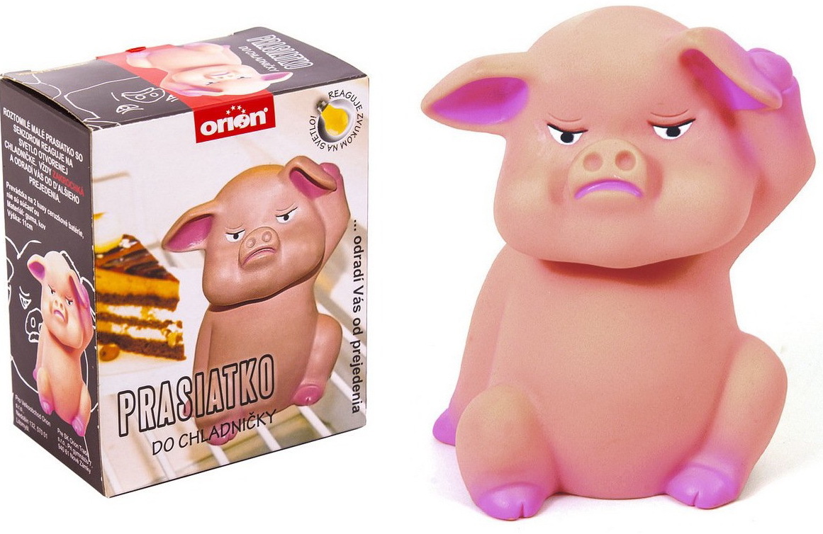 - Pig is the protector of the fridge. Just as a comic gift to your sister, you can hand a gadget that you need to put in the fridge. She will grunt angrily every time the refrigerator compartment opens. In the form of an uncommon gift such a gadget will do.