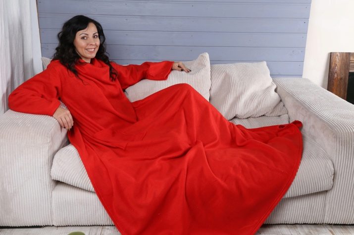 - Blanket with sleeves. Plain blanket as a gift - too boring. And the blanket, which has two necklines with sleeves, is already interesting! People with a good sense of humor can safely give such a rug, although it does not add much advantage in comparison with a regular veil. The plaid is convenient because you can not pull your hands out.