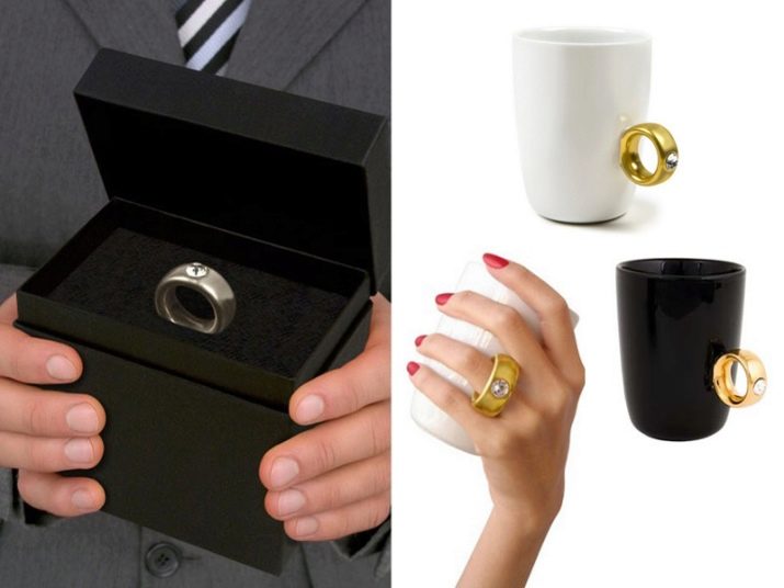 - Mug - diamond ring. For a small draw, you can give your sister a mug in a dark box. The peculiarity of the gift is that visually when unpacking it seems that it is a ring in the corresponding box.