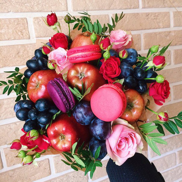 All this, of course, must be beautifully packaged. It will look good originally designed baskets of different directions. For example, it is possible to form a fruit basket by placing there beautifully laid pineapple, bananas, oranges, kiwi, mango. You can choose other options: pears, apples, grapes, melon. Peaches, apricots and nectarines are also a good company for making a fruit basket. If the season allows, you can present as a gift a basket of large fragrant strawberries.