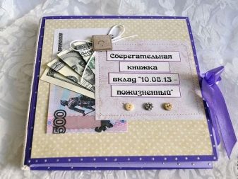 Make a "savings book". To create a cover, you need to take an A5 format folder and wrap it in bright fabric. To decorate the pages of the passbook, you should paste different funny pictures on each of them, corresponding to the theme.
