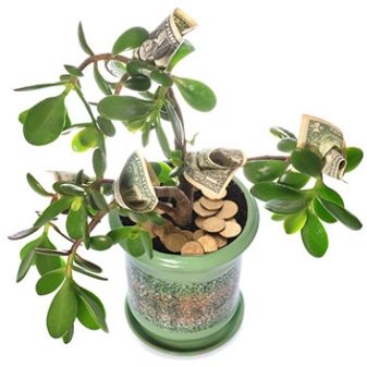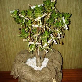 Another common way to donate money is to create a real tree out of them. To do this, you need to buy a plant in a flower shop and carefully attach bills folded with a straw and tied with ribbons to each branch. It is best to purchase a bollard, popularly referred to as the "money tree", or zamiokulkas (dollar tree).