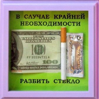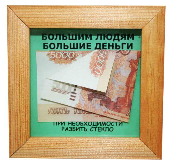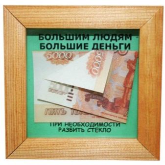 Original and worthy souvenir will be the money in the frame. For this you need to buy a frame for photos of small size. On the basis of photographs should put a dark colored paper. On the frame it is necessary to glue the inscription with a wish, recommendation or comic instruction about spending the amount handed to the person to whom you will give it. A banknote is placed on top of the text.