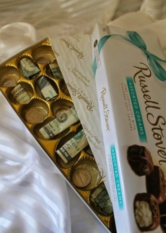 Mothers, grandmothers, and the entire female sex, give original gifts, such as cash sweets. To do this, you need to buy a box of chocolates and attach them, twisting the tube, bills. Roll each candy in the box with a banknote and carefully close it.