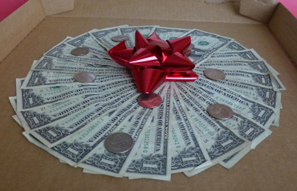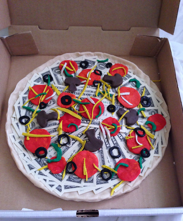 The original box for the money will be a pizza box. It is neatly required to put money in the form of the sun and close the box.
