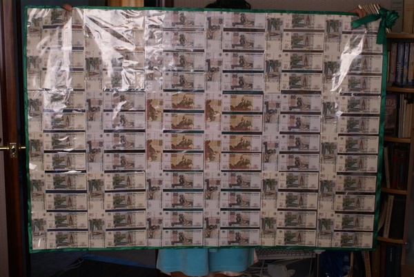 Give an interesting carpet of money, which can surprise the birthday. This will require oilcloth and the money itself. On the oilcloth is to sew pockets, the size of a banknote, and in each of them to put a banknote.