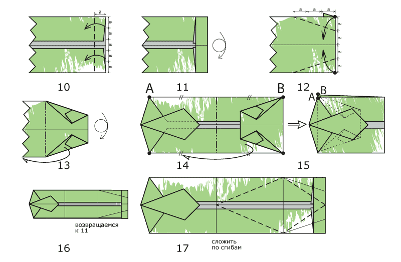 - To create a collar, it is necessary to fold from the back side that part of the banknote from which the collar was made.