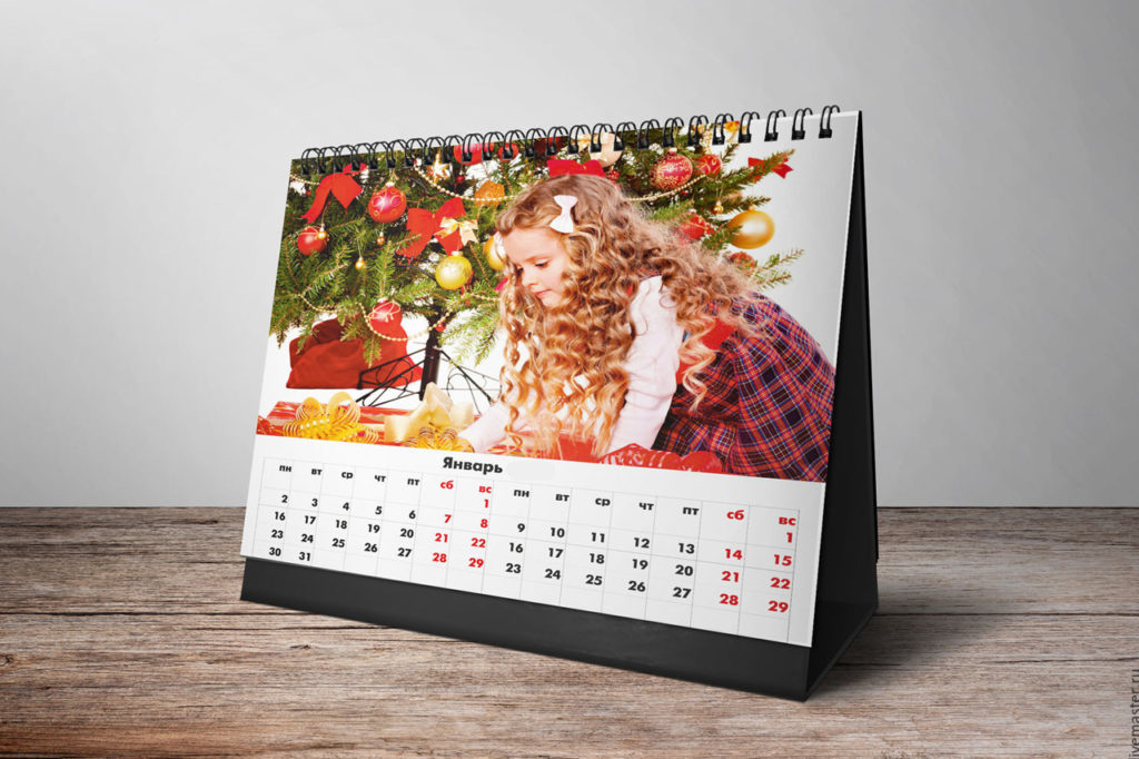 It is made for the whole year in the form of a poster, or maybe a flip. Usually, family photographs are used for the calendar, depicting family members for a walk, at work at the appropriate time of the year.