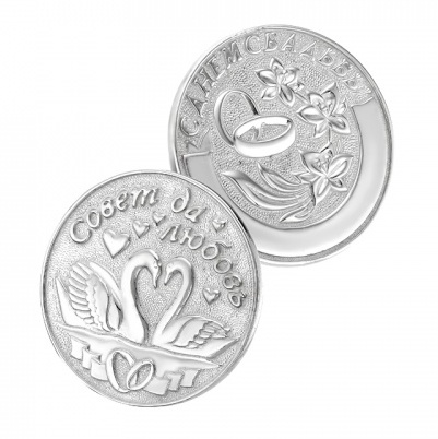 Wedding is an extremely important event in the lives of many people, so the choice of gifts for the wedding ceremony should be approached with the maximum amount of responsibility. A silver coin can be a wonderful and extraordinary bridal gift. Most often, on the front side of the mascot coin, two dove and wedding rings are depicted, and on the back side you can find the inscription “Council and love”.
