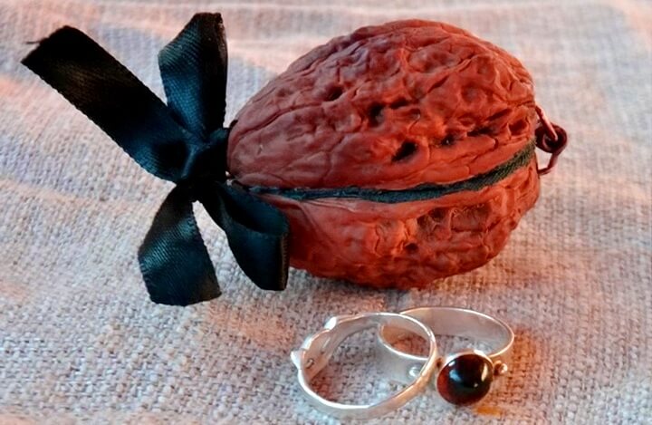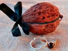 If you want to make a proposal to your girlfriend, then can be used as a ring case for walnuts. In one of them place the decoration and mark it, tied it with a ribbon, and put it in a common vase not in the most visible place. While the girl is sleeping, attach a note on the head of the bed, a refrigerator or a bathroom mirror with a hint that she will have a surprise and a hint how to find it.