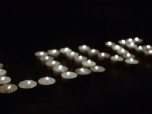 Popular is a greeting written on the asphalt in front of the windows of the person you want to congratulate. It may be just an inscription or a combination of it with a picture. Turn on the fantasy, make the original greeting or put the words out of roses. If the weather is windless, then you can use tablet candles, from which you can make the name of your beloved or write a whole phrase.