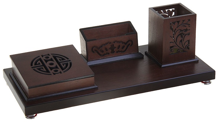 If you make one gift from the team, then this can be a good set of pens. You can see the options with holders (when the handle is placed on a special stand on the table). Also a good option would be a beautiful organizer for pens and other stationery. But this should not be a cheap plastic version, but one that is made of wood.