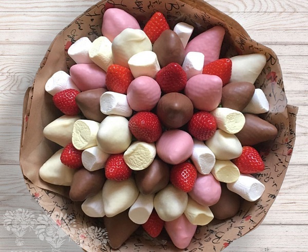 If you want to conquer the hearts of the girls of your team, then present a bouquet of strawberries in chocolate. Even the most fastidious persons will not refuse this. Making it yourself is quite difficult, so ask for help from professionals. In addition, they know reliable suppliers of strawberries, in which it is always fresh and tasty (especially important for the winter period). If you decide to place a basket with sweets, then you can add it with good tea or coffee. It will look relevant. In addition, the young ladies will not have to spend additional funds to arrange a sweet tea.