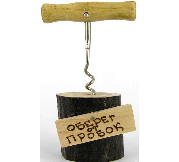 - corkscrew screwed into a wooden cork with the inscription "guard against traffic jams";