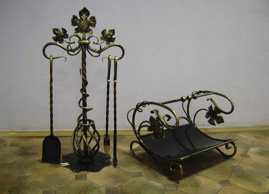 - Fireplace kits. The owners of private houses, which are equipped with a fireplace, as a gift you can present a forged fireplace set. The standard set includes a brush, a poker and a scoop on an elegant stand. It is not only beautiful, but also a useful gift. It is possible to add a set with a drovnitsa, nippers and other objects.