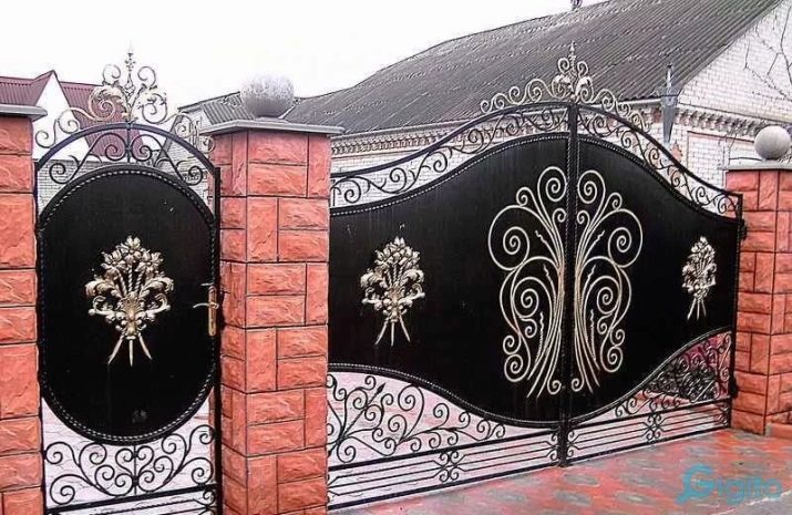 - Forged elements on the fence and entrance gate. Metal jewelry will give the exterior refinement and expressiveness.
