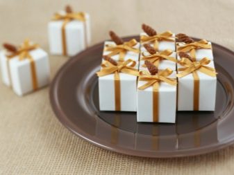 Even small and inexpensive sweets can be packaged in a very original way, which makes a very good gift. For example, for a children's holiday, you can purchase the required number of plastic spoons. Each spoon is filled with colorful dragees, mini marshmallows or other small sweets. Wrap everything in transparent wrapping paper and decorate with ribbon. By the way, if the house has a variety of silicone molds for biscuits or figure ice, then you can make a delicious surprise yourself. To do this, you must melt white, milk or dark chocolate and pour it into molds. If desired, you can add finely chopped nuts or decorate the top with bright sprinkling. After each chocolate figure you need to pack in a transparent wrapping paper and tie with ribbon.