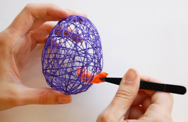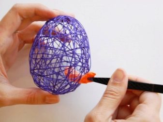 Fairly simple, but at the same time a beautiful gift option will be openwork eggs made of yarn. To create such a souvenir there will be enough glue, threads and a balloon.