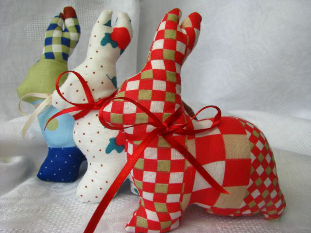 Valuable and relevant to the holiday will be hand-sewn things. In this case, you can make an Easter bunny. To create it, you will need to use templates, and you can fill the animal with an ordinary padding polyester or thread. Rabbits can be made several to present to each family member.